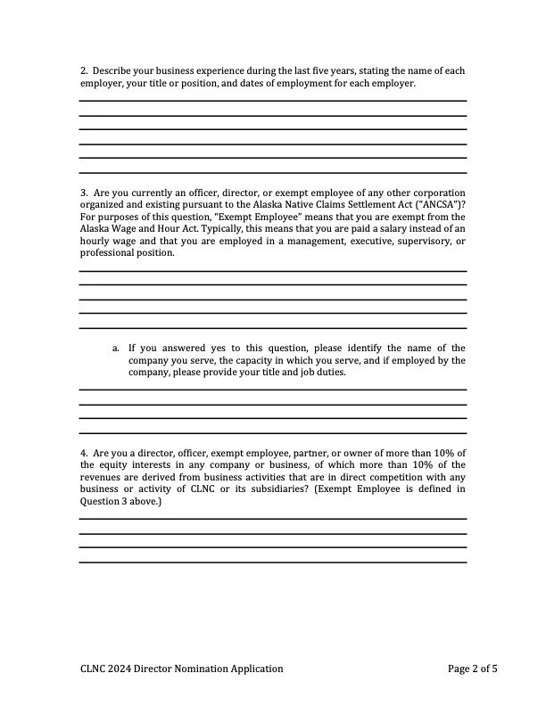 Please let us know if you want to be added to CLNC’s shareholder email list! Email admin@clncalaska.com.